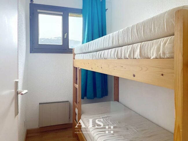 Composé de deux pièces, il offre un espace de vie confortable et fonctionnel, et une cabine avec lits-superposés et fenêtre.