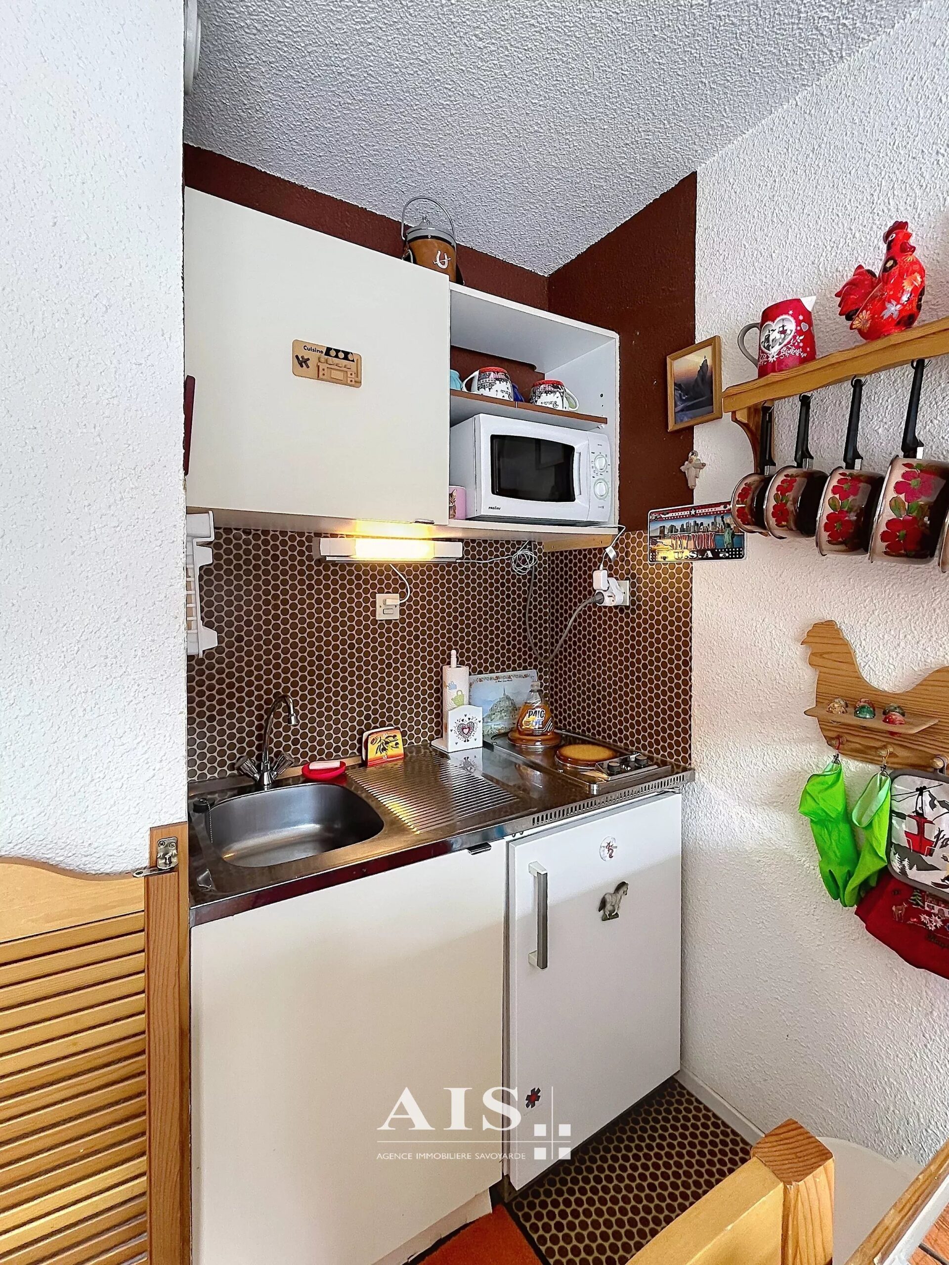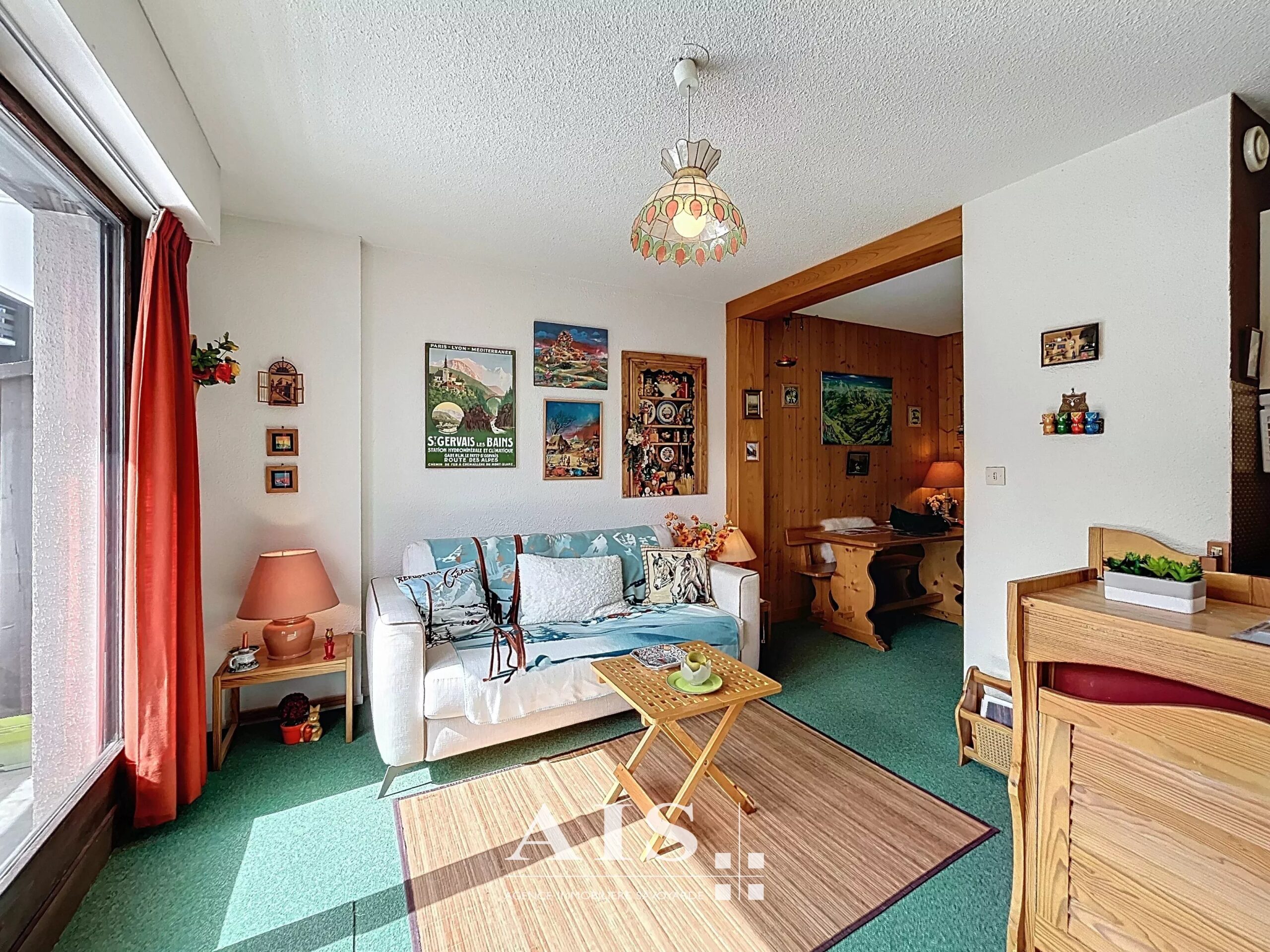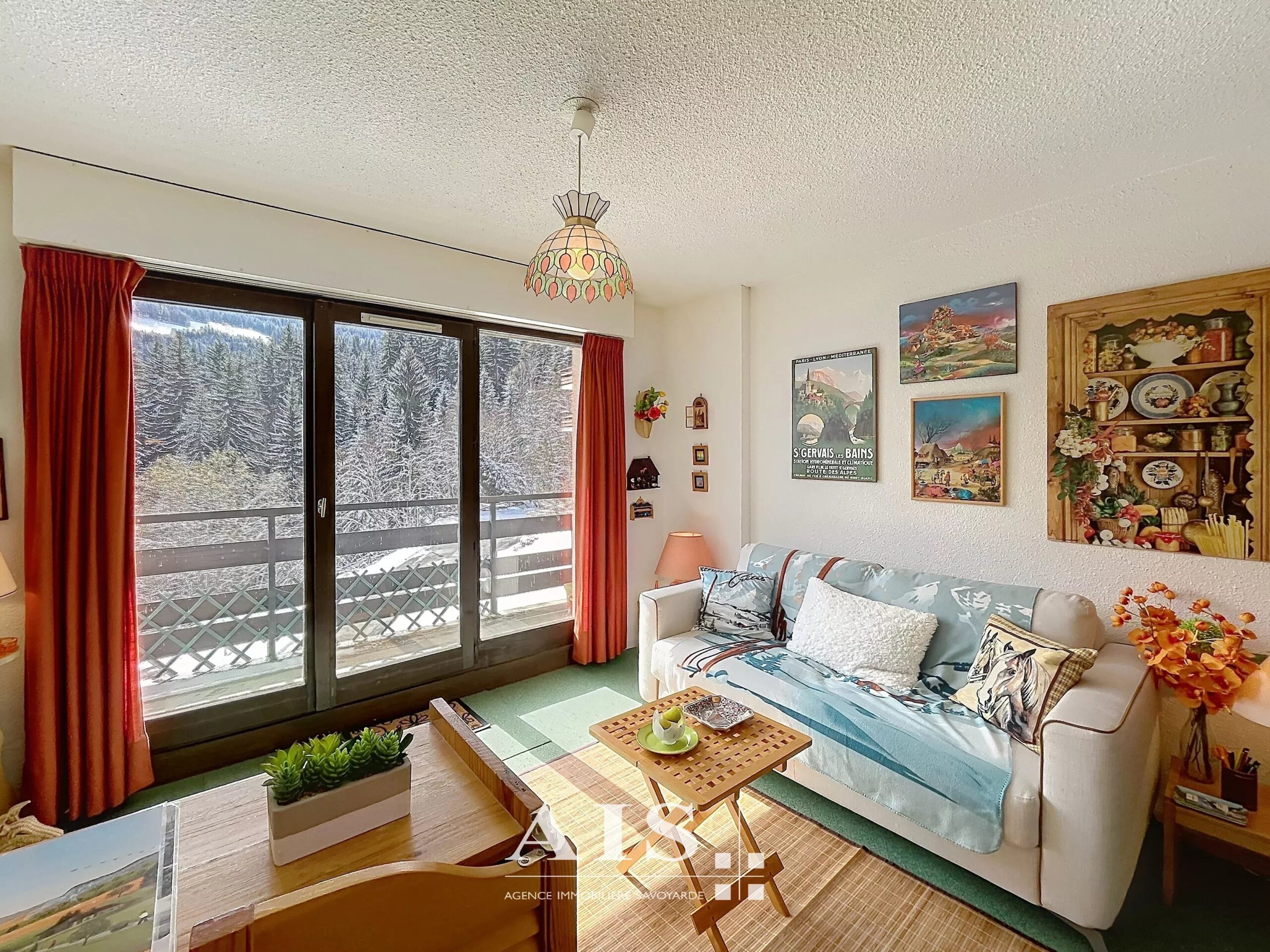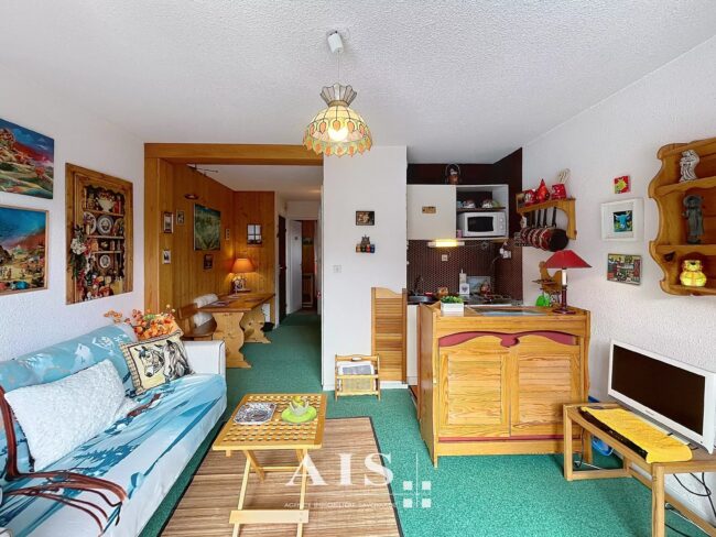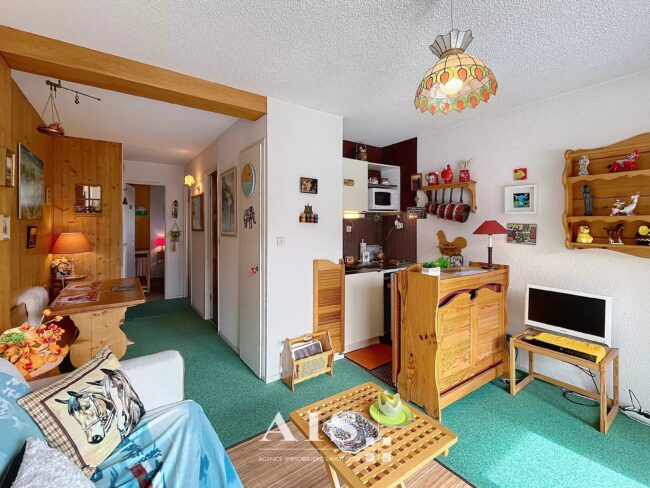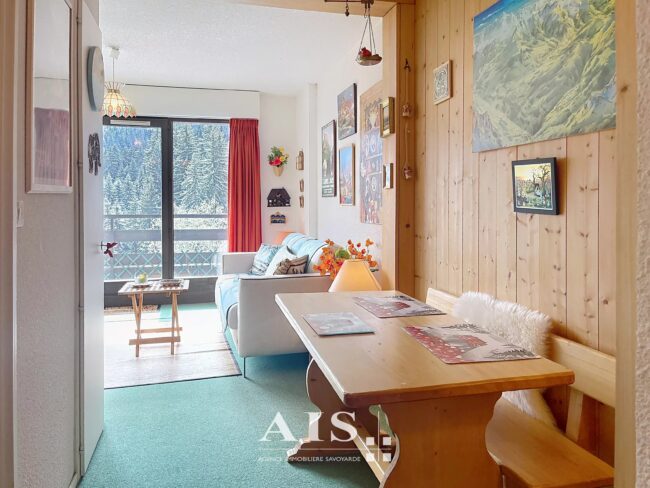 Appartement de 32,43 m² situé au Grattague, à 1300m d'altitude, parfait pour profiter des montagnes en toutes saisons. La pièce à vivre lumineuse bénéficie d'une grande baie vitrée ouvrant sur un balcon offrant une vue imprenable sur les massifs du Mt Blanc.